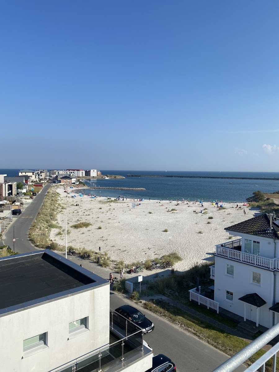 In der oberen Etage, das eigentliche Highlight das Hauses, befindet sich die Galerie mit Kamin, grosser Dachterrasse mit atemberaubenden unverbautem Blick auf den ganzen Hafen und die Ostsee. Hier können Sie gleich nach Ihrem Saunagang entspannen. Natürlich können Sie selbst in der Sauna den Blick auf den Hafen geniessen.